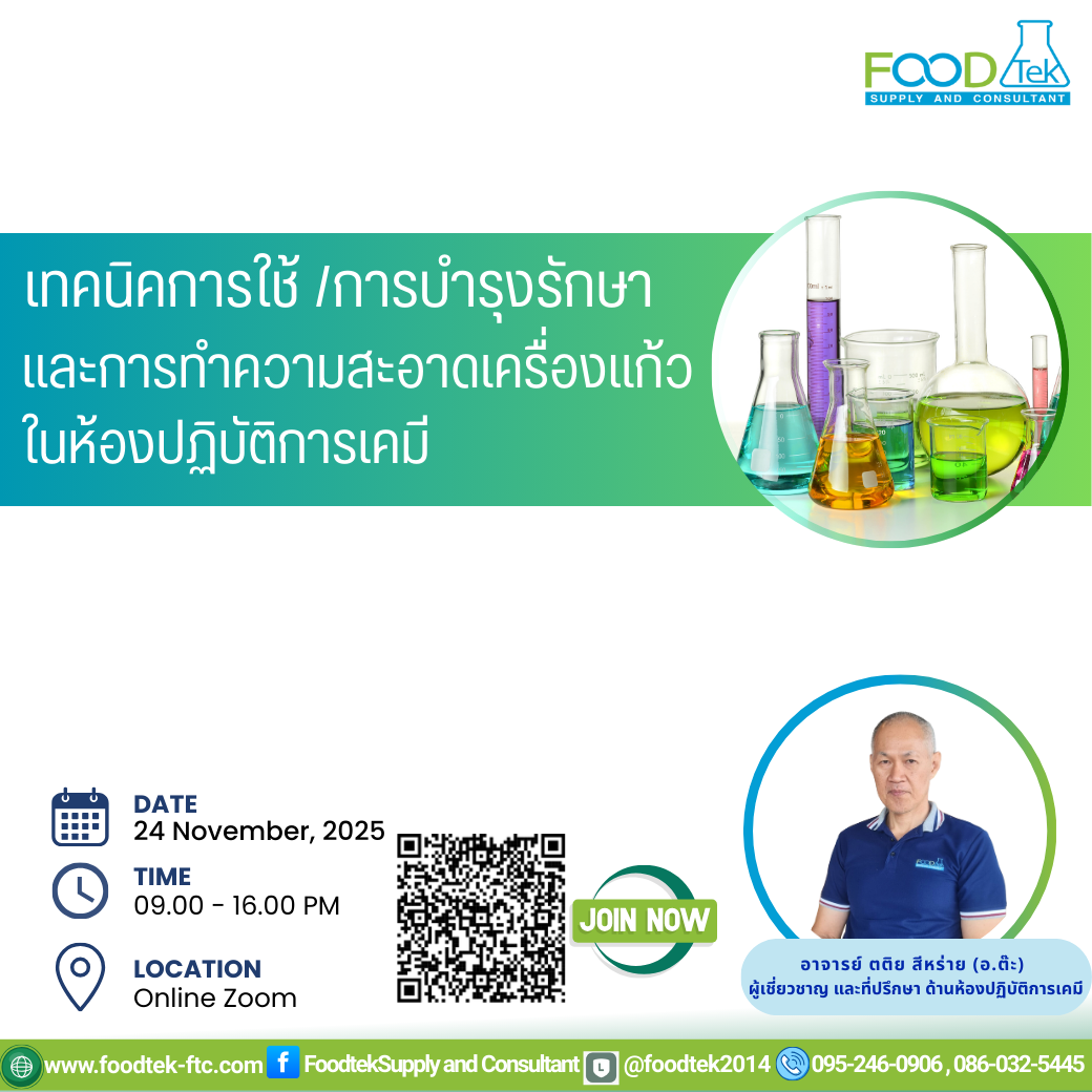 Online Seminar "เทคนิคการใช้ /การบำรุงรักษา และ การทำความสะอาดเครื่องแก้วในห้องปฏิบัติการเคมี"